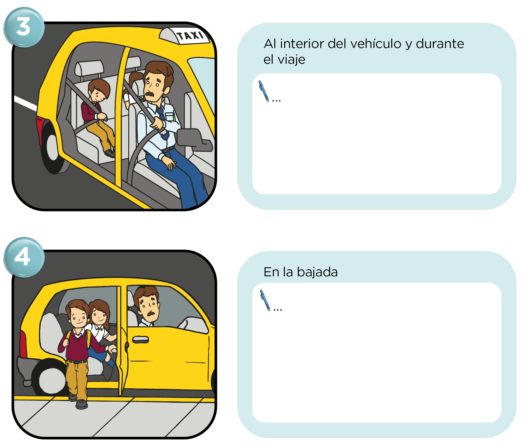 Escribe a continuación las reglas que hay que tener en cuenta cundo viajas en taxi.