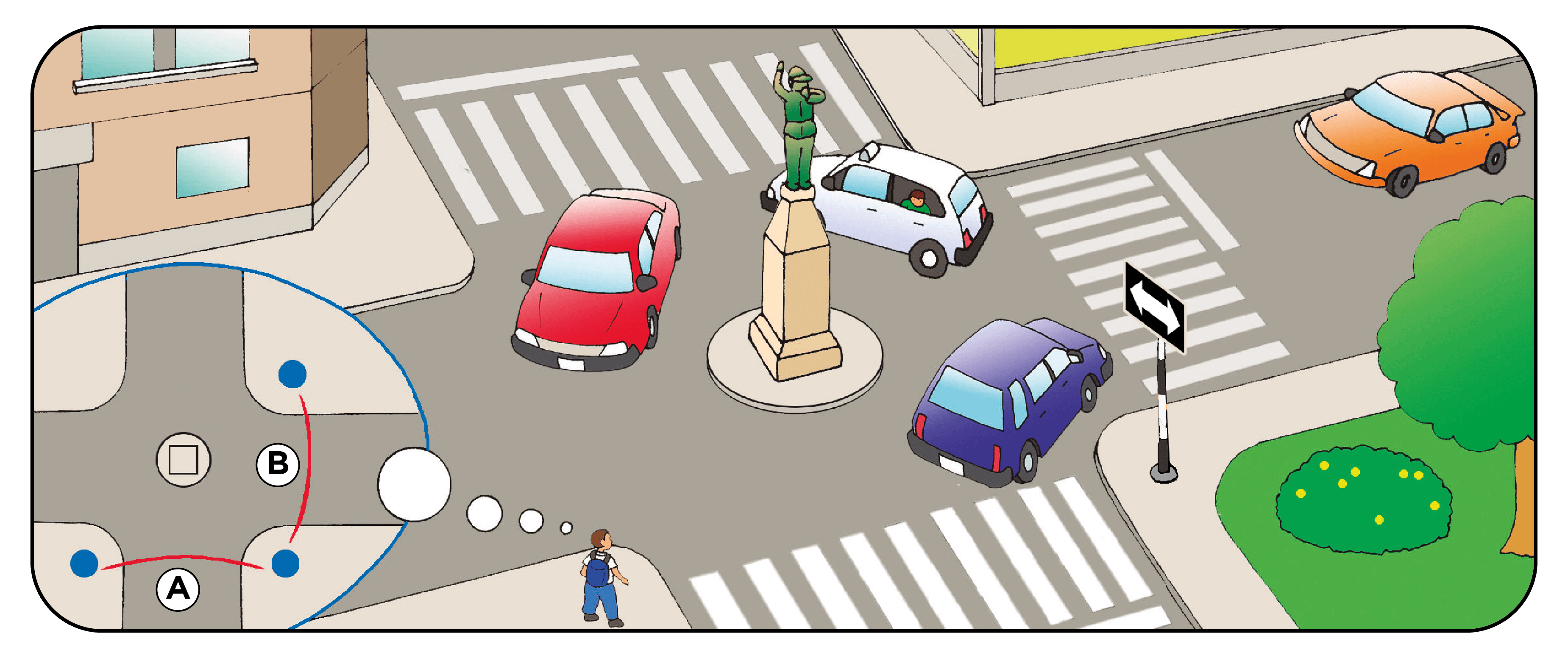 Para llegar al colegio, Raúl tiene que cruzar una plaza con muchas