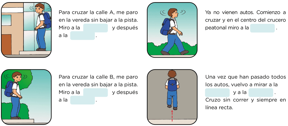 qué calles debe cruzar (AyB) y luego fíjate en las señales y en el sentido